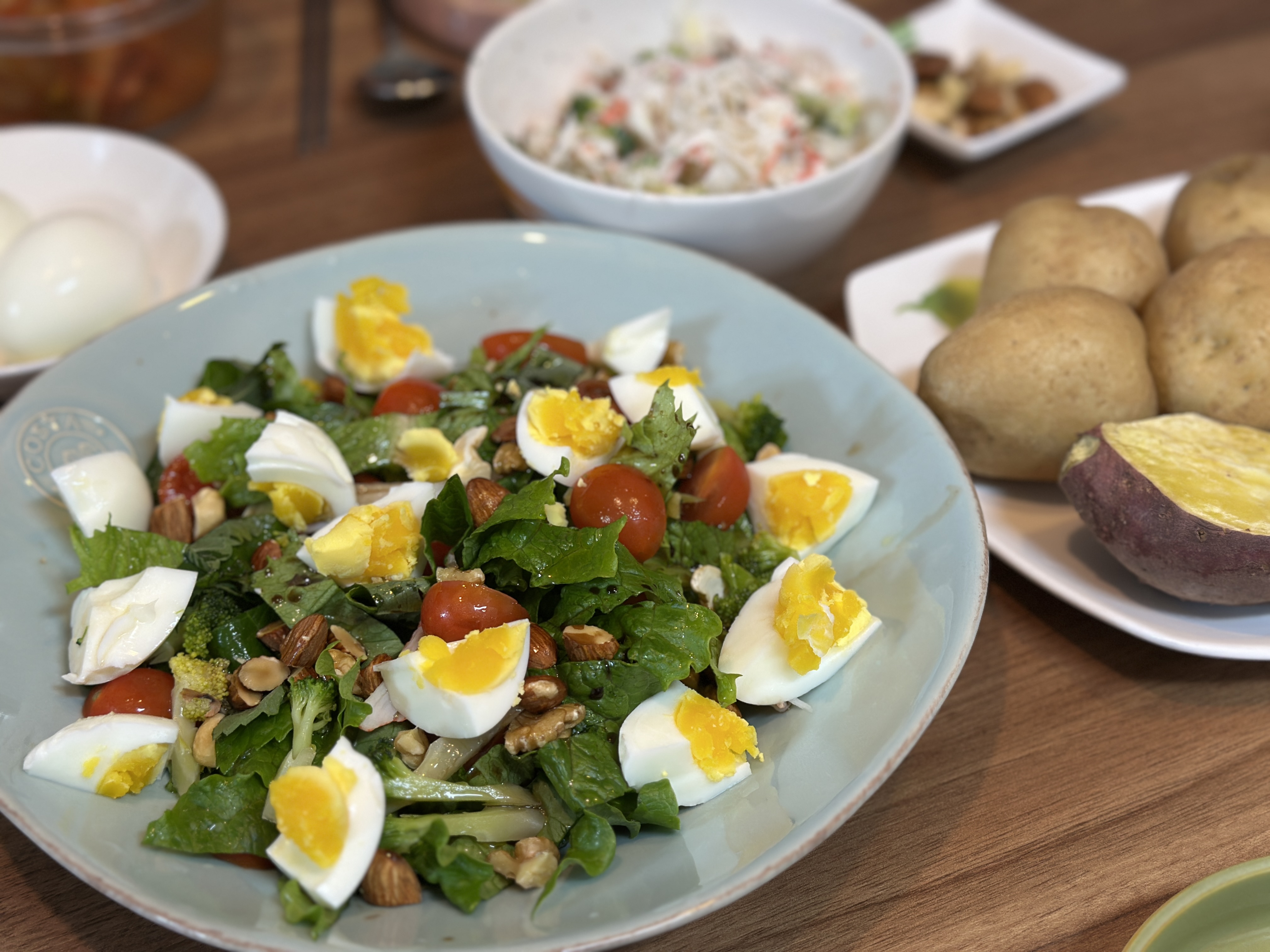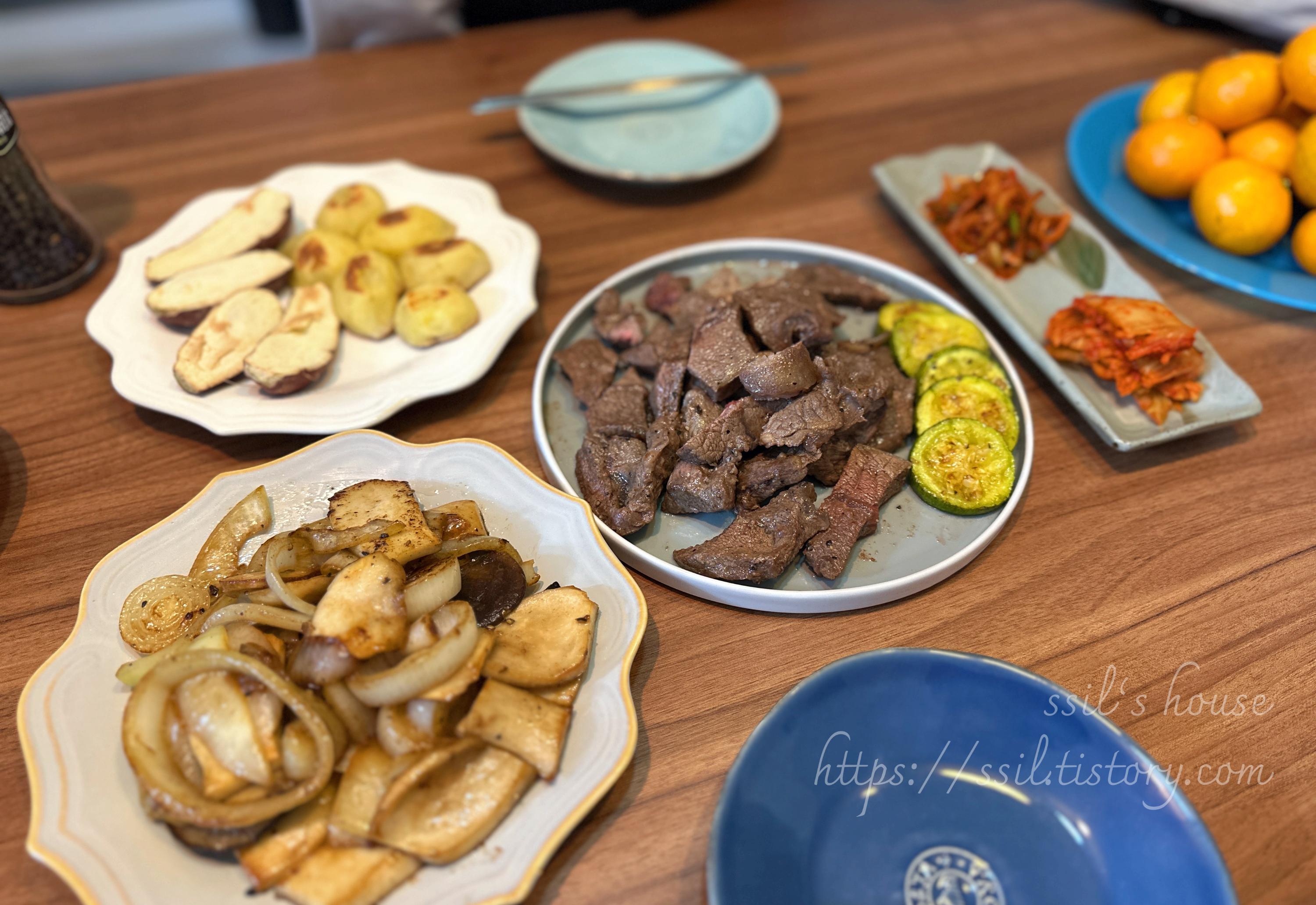 요즘 공부하는 아들의 삼시세끼를 챙겨 주는 것이 일 중의 일입니다.그래서 가끔은 오전에 아주 간단한 브런치를 만들어주기도 합니다. 간단 브런치 1 : 고구마스프, 토스트+메이플시럽, 토마토, 견과류 1. 토스트→ 통밀식빵을 계란에 적셔서 프라이팬에 구워 계란 토스트를 만듭니다.2. 고구마 스프→ 프라이팬에 올리브오일을 넣고, 채 썬 양파를 볶아줍니다.→ 볶은 양파 + 찐 고구마 + 브로콜리 조금 + 우유 조금을 넣고 갈아줍니다.→ 냄비에 갈아놓은 재료와 우유, 물, 체다치즈 한 장을 넣고 저어주며 끓여줍니다. 3. 토스트는 메이플시럽을 뿌리고, 토마토와 견과류를 함께 곁들였습니다. 간단 브런치 2 : 시판 콘수프, 버섯오믈렛, 구운 식빵+바나나, 구운 방울토마토 1. 프라이팬에 올리브오일을 두른 후..
